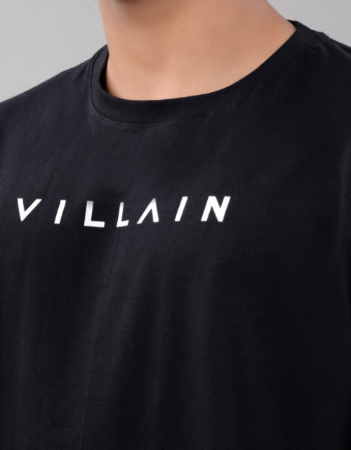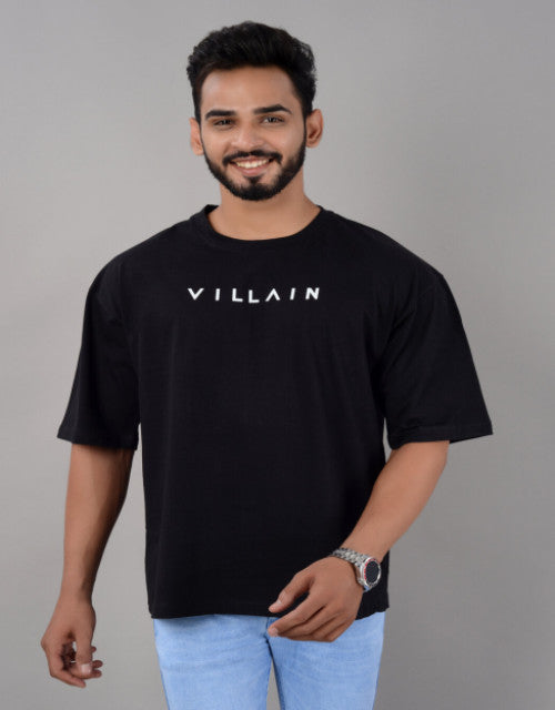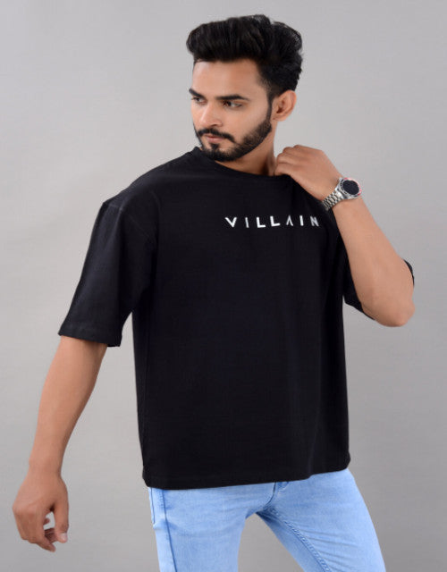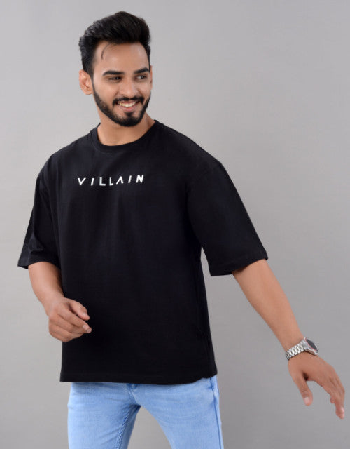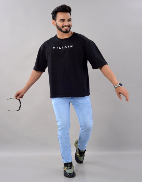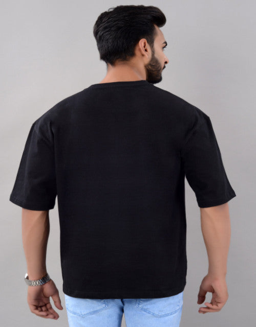 Cotton Blend Oversize Loose Fit Drop Shoulder Round Neck Half Sleeve Typography Black T-Shirt for Men (SIZE- M,L,XL,XXL)