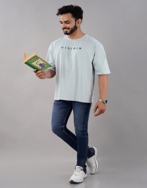 Cotton Blend Oversize Loose Fit Drop Shoulder Round Neck Half Sleeve Typography Turquiose T-Shirt for Men (SIZE- M,L,XL,XXL)